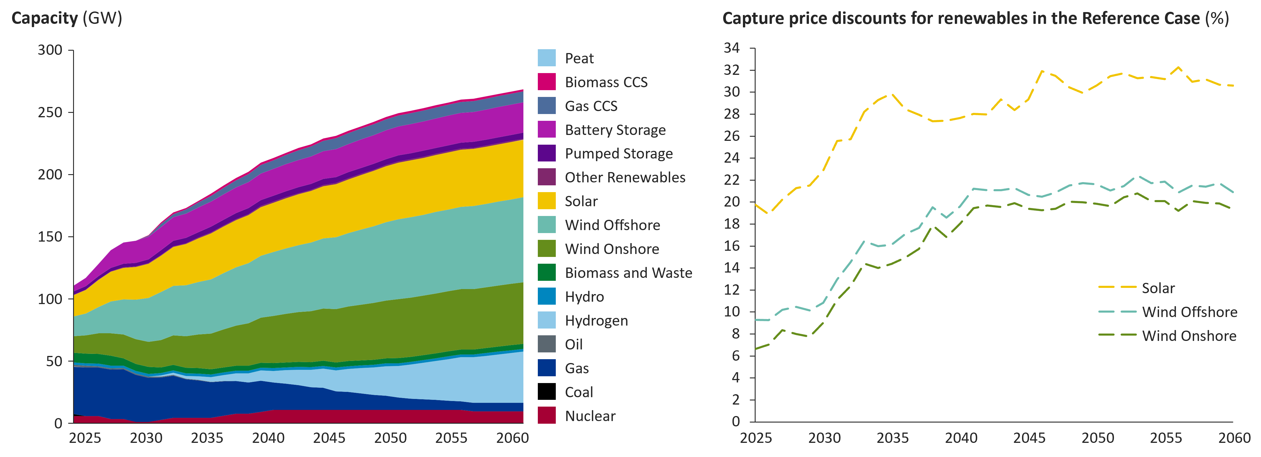 Baringa projects the share of solar and wind capacity to increase 2030, with shaping costs increasing further