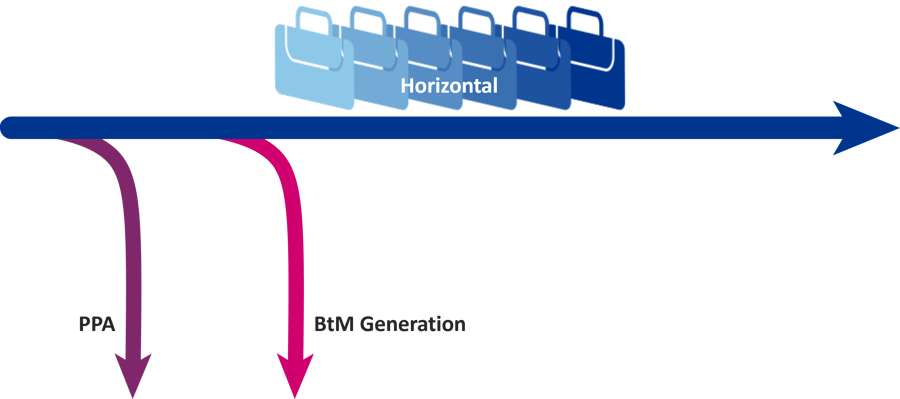 These additional complexities, born of modern procurement, highlight the need for a strategic shift. Power is no longer solely a Procurement exercise and responsibility, but rather a Board-level agenda item - to ensure the right balance between cost, risk and a credible power strategy. Today’s procurement landscape no longer allows for isolated assessments. Instead, businesses need a holistic view that integrates two types of approach to strategy: Vertical and Horizontal.