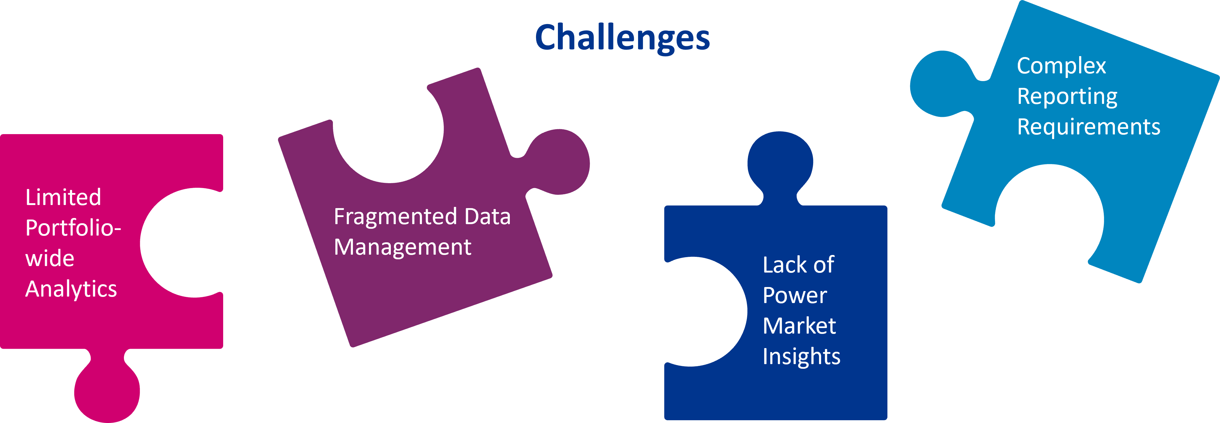- Limited Portfolio-wide Analytics: Another challenge is consolidating a comprehensive view to demonstrate overall performance. Because data, analysis, and decisions are often stored separately, it is difficult to provide a portfolio-wide view that allows for holistic risk exposure assessments.