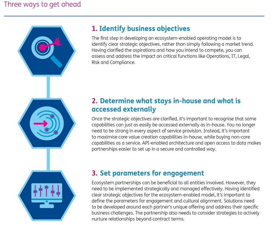 From online marketplaces to collaborative innovation, ecosystems enable multiple partners to pool their capabilities and offer more choice and better outcomes, in a more customised way.
