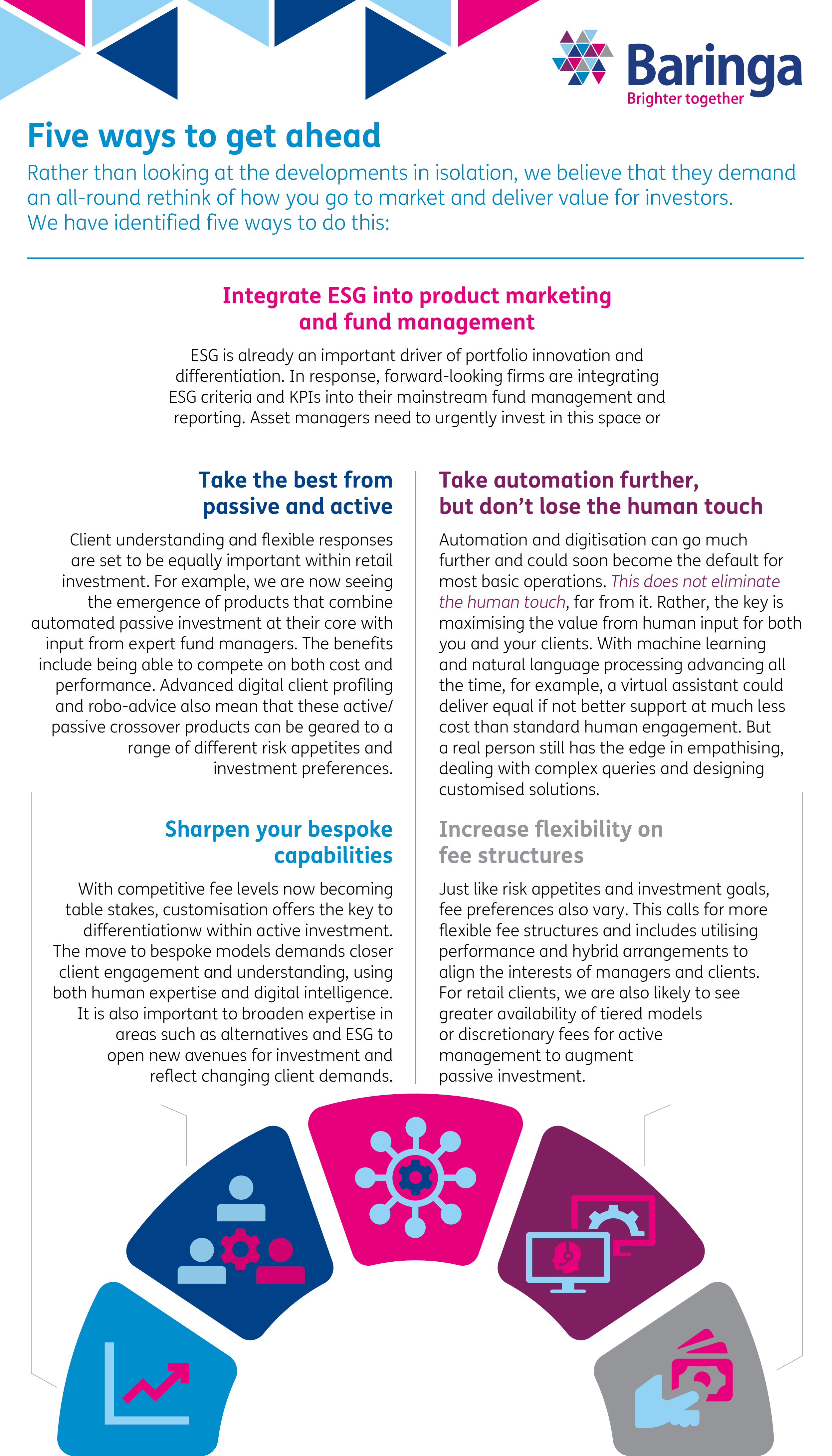 Rather than looking at the developments in isolation, we believe that they demand an all-round rethink of how you go to market and deliver value for investors. We have identified five ways to do this: