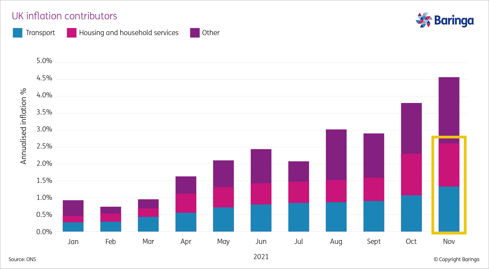 These inflationary pressures are only expected to worsen in March 2022, as the energy price cap is reviewed, and the full impact of the European wholesale gas shortages are incorporated into retail prices for UK households. Announced recently was a rise in the cap of 50%, with a further rise expected in October 2022.